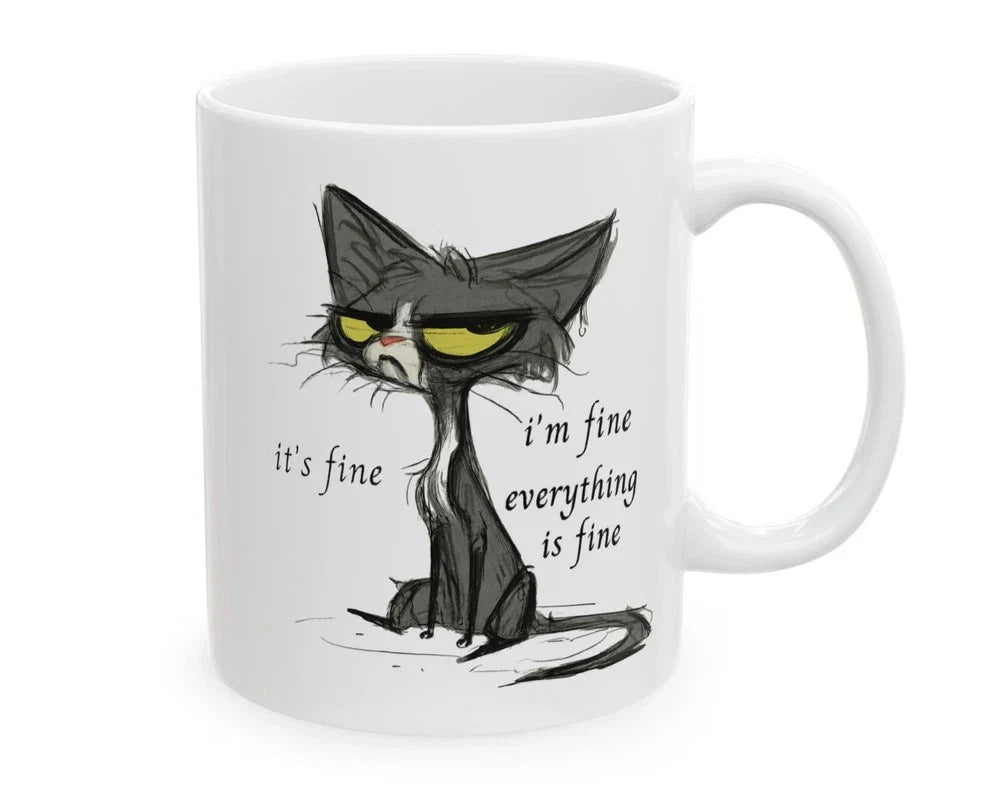 Funny Cat Mug - ' It's Fine , I'm Fine ' Sarcastic Coffee Cup Gift