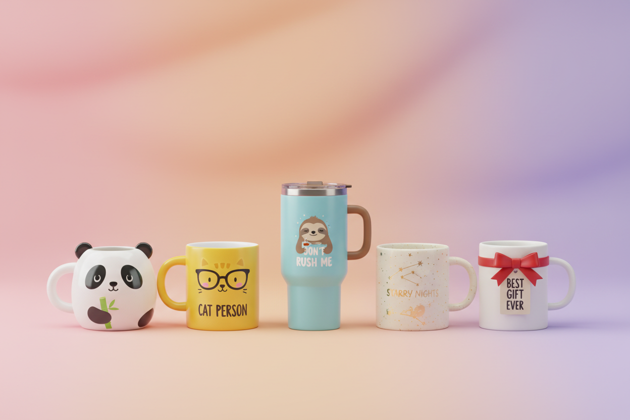 Discover cute, funny mugs designed to brighten your day and make perfect gifts